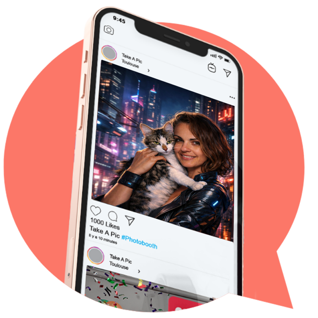 Takeapic propose la location de photobooth IA à Toulouse, en Haute-Garonne et dans toute la région Occitanie. Notre photobooth intelligent s’intègre parfaitement à vos événements professionnels, privés et associatifs. Animation innovante, technologie IA, personnalisation complète et accompagnement clé en main.